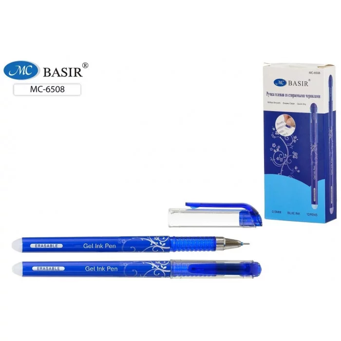 Ручка гелевая пиши-стирай синяя 0.5/128мм корпус синий с рисунком BASIR МС-6508/син/ 083310