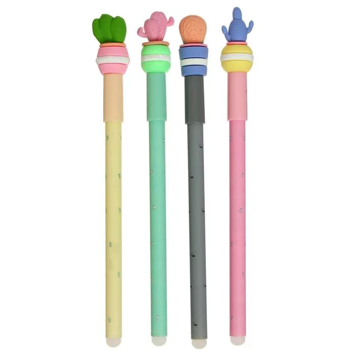 Ручка гелевая-прикол СТИРАЕМЫЕ ЧЕРНИЛА стержень черный, корпус МИКС Кактус(штрихкод на штуке)6861750
