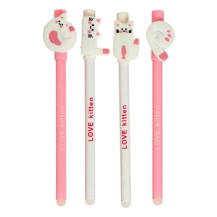 Ручка гелевая-прикол СТИРАЕМЫЕ ЧЕРНИЛА стержень черный, корпус МИКС Кошечка(штрихкод на штук)6861749