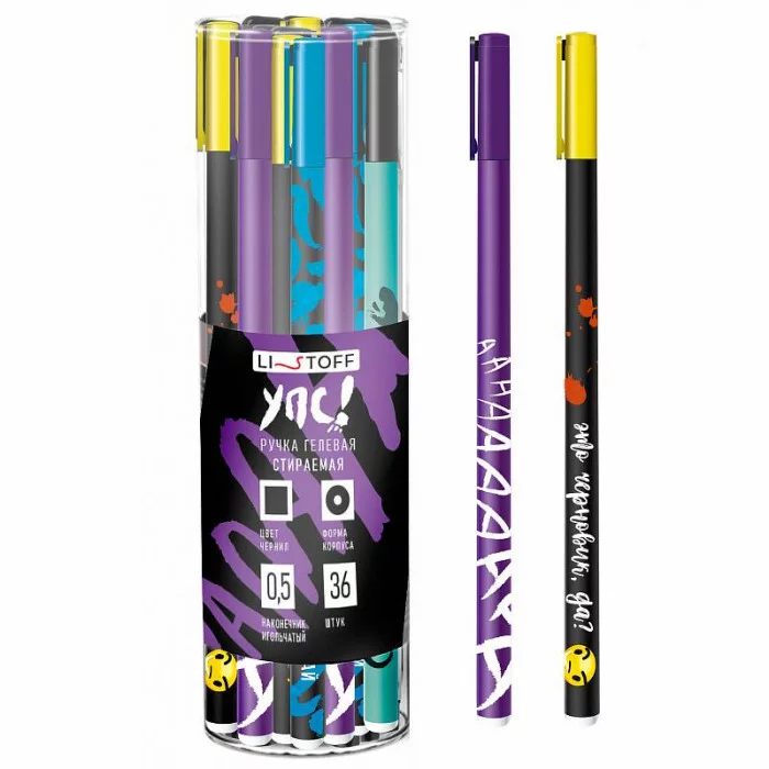 Ручка гелевая со стираемыми чернилами 0, 5 мм. Корпус: круглый, полноцветная печать, Soft Touch. "Упс! Черная" КанцЭксмо РГС360057
