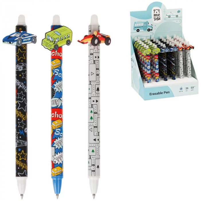 Ручка гелевая стираемая автоматическая MESHU "Supercar" синяя, 0,5мм, корпус ассорти 315689