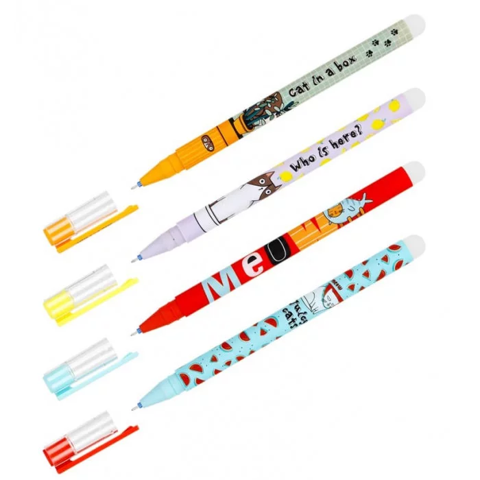 Ручка гелевая стираемая MESHU "Juicy cats" синяя, 0,5мм, корпус ассорти, софт-тач 343470