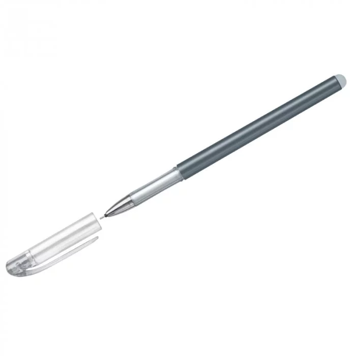 Гелевая ручка OfficeSpace Orient – это универсальный дизайн с уникальными стираемыми чернилами внутри. Гелевые черные чернила не только ярко пишут на бумаге, но и при воздействии температуры становятся невидимыми – достаточно потереть написанное ластиком на кончике ручки. Обесцвеченные чернила проявляются при низкой температуре. На серой ручке есть колпачок с клипом – можно закрепить ручку на одежде или тетради. Диаметр пишущего узла 0,38 мм, благодаря чему получается ультратонкая и аккуратная линия. Цвет чернил: черный; Толщина линии письма: 0,3 мм; Длина письма: 150 метров; Цвет корпуса: серый.