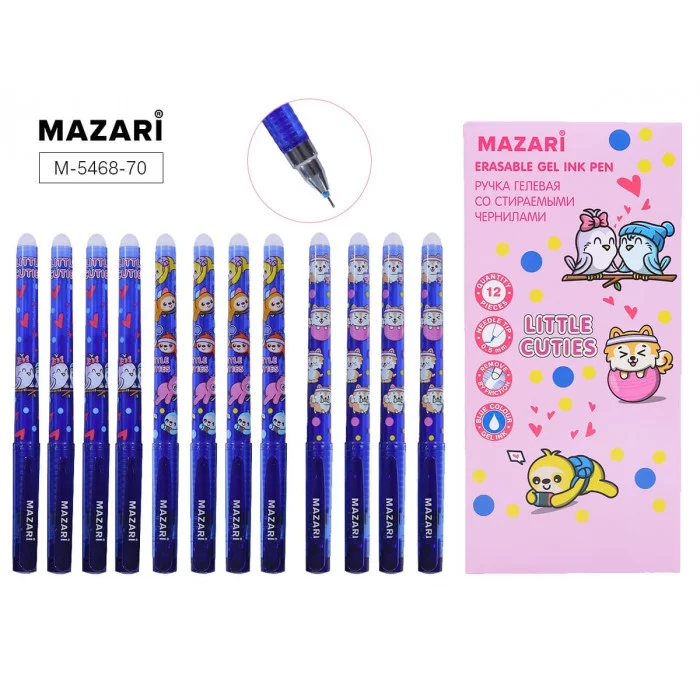 Ручка M-5468-70 гел. со стир. черн. LITTLE CUTIES, СИН, 0.5мм