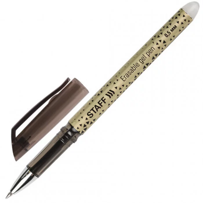 Ручка стираемая гелевая STAFF "College GP-200", ЧЕРНАЯ, хромированные детали, узел 0, 5 мм, линия письма 0, 35 мм, 142495