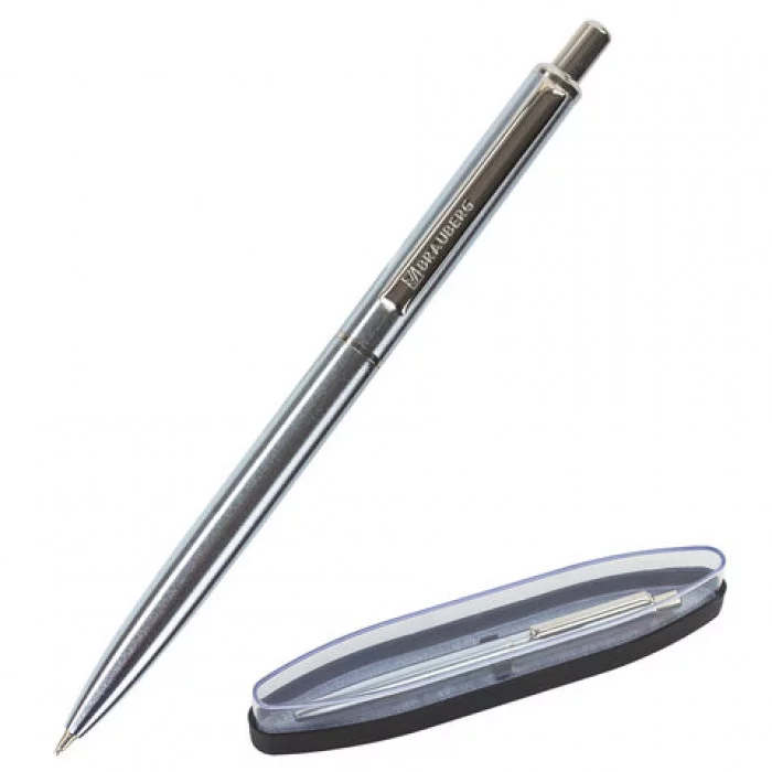 Ручка бизнес-класса шариковая BRAUBERG Larghetto, СИНЯЯ, корпус серебристый с хромированными деталями, линия письма 0, 5 мм, 143474