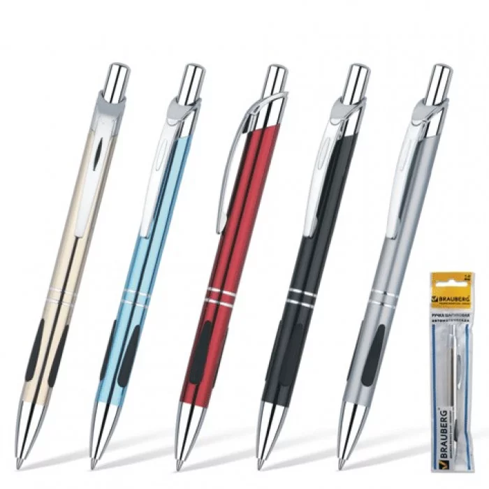 Ручка бизнес-класса шариковая BRAUBERG Minister, корп.ассорти,сереб.дет.,рез.вставки, 1мм,син,141437