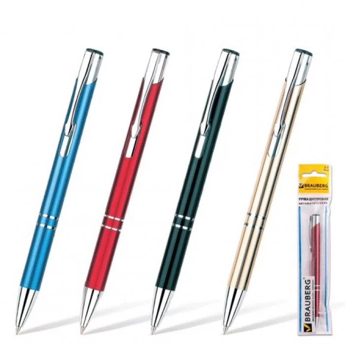 Шариковая ручка бизнес-класса BRAUBERG с металлическим корпусом серии "Win" идеально подойдет для выполнения ежедневних задач. Оригинальный дизайн подчеркнет индивидуальность владельца. Корпус ручки выполнен из металла и декорирован серебряными деталями. Стержень типа "Parker" имеет длину 98 мм. Диаметр пишущего узла, равный 1 мм, создает линию письма, равную 0,7 мм. Нажимной механизм обеспечивает комфортное использование. Поставляется в нескольких вариантах цвета корпуса (без возможности выбора). Тип ручки: шариковая. Механизм: нажимной. Серия: Gift. Цвет корпуса: ассорти. Материал корпуса: металл. Цвет чернил: синий. Отделка деталей: "серебро". Длина стержня: 98 мм. Тип стержня: Parker. Толщина линии письма: 0.7 мм. Подходит для нанесения логотипа: да. Упаковка: пакет с европодвесом Бренд - BRAUBERG. Производитель - Китай. Артикул - 141434. Штрихкод - 4606224064901