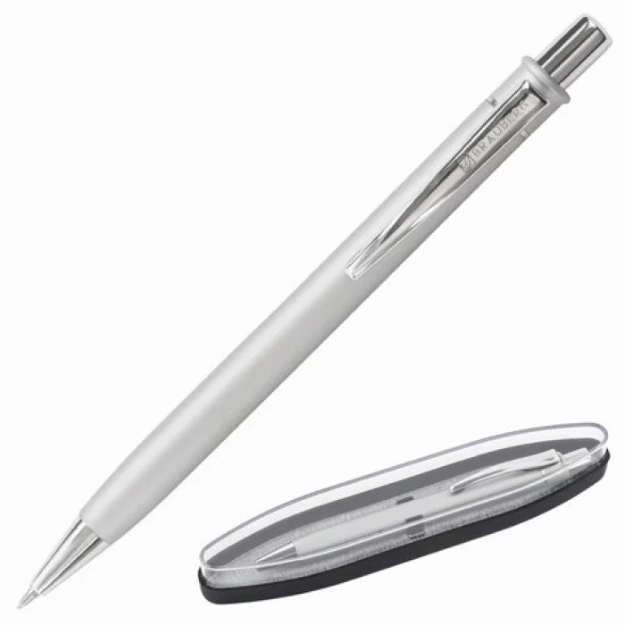 Ручка подарочная шариковая BRAUBERG "Vocale", СИНЯЯ, корпус серебристый с хромированными деталями, линия письма 0, 5 мм, 143490