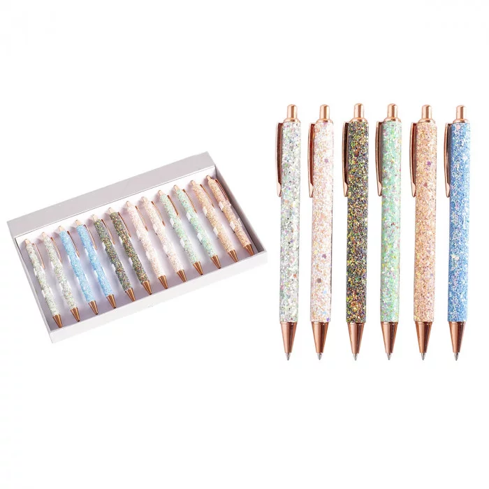Ручка шариковая Alingar "Блеск", синяя, 1,0 мм, автоматическая, металлический цветной корпус, ассорти, картонная упаковка 1шт AL7875