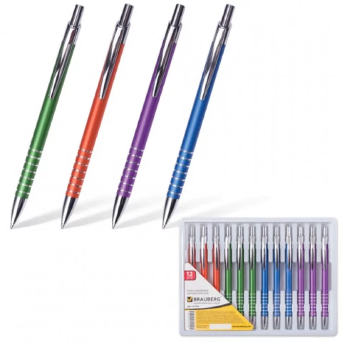 Ручка шариковая BRAUBERG бизнес-класса, "Gentleman", корпус ассорти, серебр.дет., 1мм, 141426, синяя