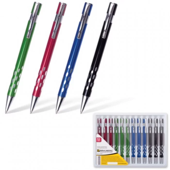 Ручка шариковая BRAUBERG бизнес-класса "State" корпус ассорти, серебр. детали, 1мм, 141431, синяя