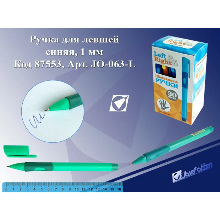 Ручка для левшей синяя, 1мм, цвет корпуса ассорти 1шт JO-063-L