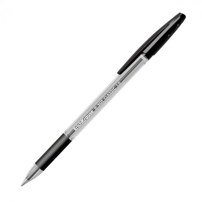 Ручка ERICH KRAUSE "R-301 Grip" черная 1.0мм корпус прозрачный рез 39528 087506