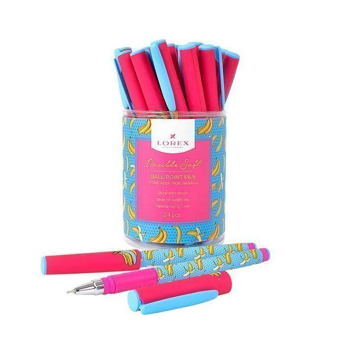 Ручка маслян. 1 шт LOREX FOOD ADDICTION.BANANA серия Double Soft 0,70 мм синий, резин.грип кругл., прорез 189561