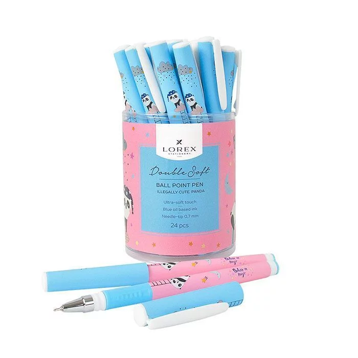 Ручка маслян. 1шт LOREX ILLEGALLY CUTE.PANDA серия Double Soft 0,70 мм синий, резин.грип, кругл. прорези 189555