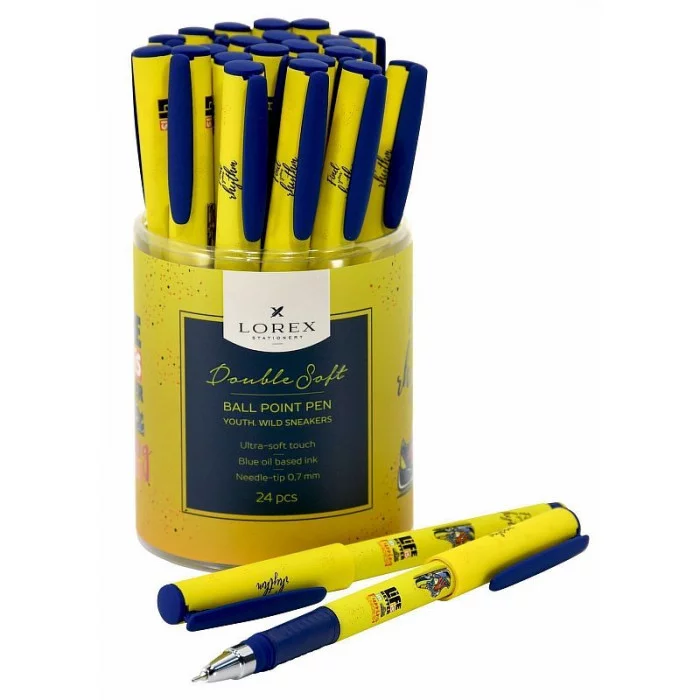 Ручка маслян. 1шт LOREX YOUTH.WILD SNEAKERS серия Double Soft 0,70 мм синий, резин.грип, кругл. прорезин 189556