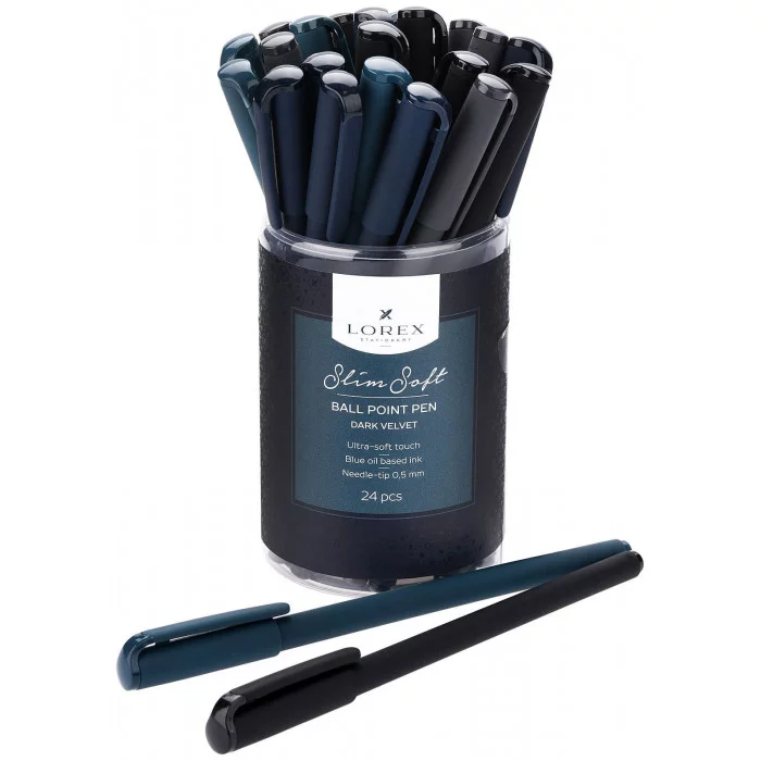 Ручка маслян. LOREX DARK VELVET SLIM SOFT GRIP синий 0,5 мм ассорти кругл. корп. ultra-soft touch грип игольчатый наконечник 220965