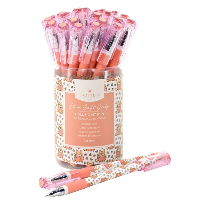 Ручка маслян. LOREX ILLEGALLY CUTE.CORGI Slim Soft Grip синий 0, 5 мм кругл. корп. ultra-soft touch грип игольчатый наконечник 204814