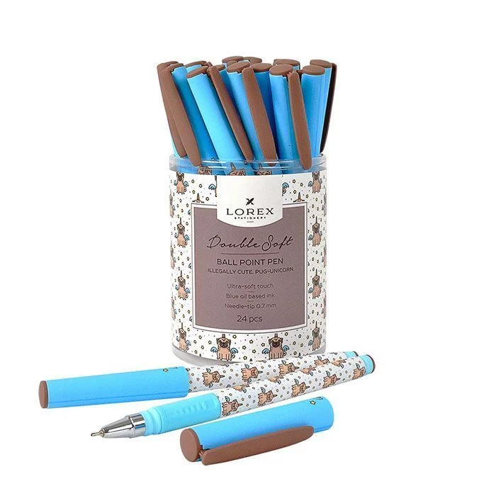 Ручка маслян. LOREX ILLEGALLY CUTE.PUG-UNICORN серия Double Soft 0,70 мм синий, резин.грип, кругл. п 189552