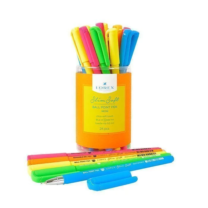 Ручка маслян. LOREX NEON серия Slim Soft 0, 50 мм синий, цвет корпуса: ассорти, кругл. прорезин. корп 189581