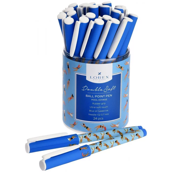 Ручка маслян. LOREX POOL VOYAGE DOUBLE SOFT синий 0,7 мм голуб. кругл. корп. ultra-soft touch грип игольчатый наконечник 220953