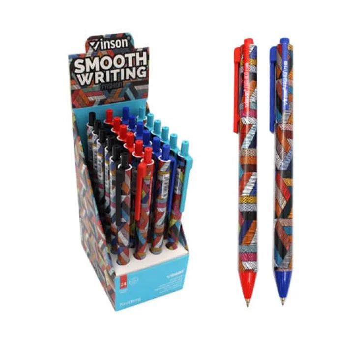 Ручка масляная авт. VINSON CX-83 (син) 0, 5мм FASHION "Ниточки" глянцевый корпус, цвета ассорти, в к/кор №F3 (24/2160) 325914