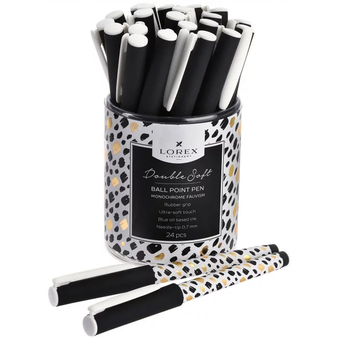 Ручка масляная LOREX MONOCHROME FAUVISM, серия Double Soft, круглый прорезиненный корпус, резиновый Элегантный корпус среднего диаметра изготовлен по технологии Ultra-soft touch с яркими принтами, а также мягкий грип в зоне захвата.