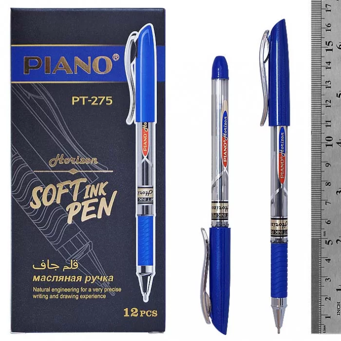 Ручка масляная "Piano Horizon",0.5мм, резиновый держатель, прозрачный корпус РТ-275 PIANO /1 /12 /0