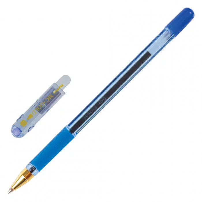 Ручка "MC Gold" синяя 0.7/142мм корпус прозрачный рез.грип ш/к MUNHWA BMC07-02 086669