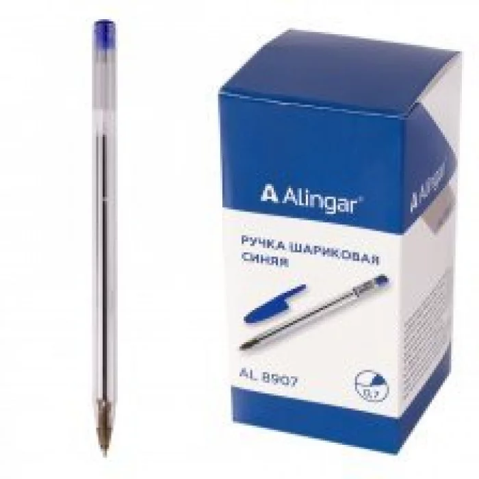 Ручка шариковая Alingar, 0,7 мм, синяя, шестигранный, прозрачный, пластиковый корпус, картонная упаковка AL8907
