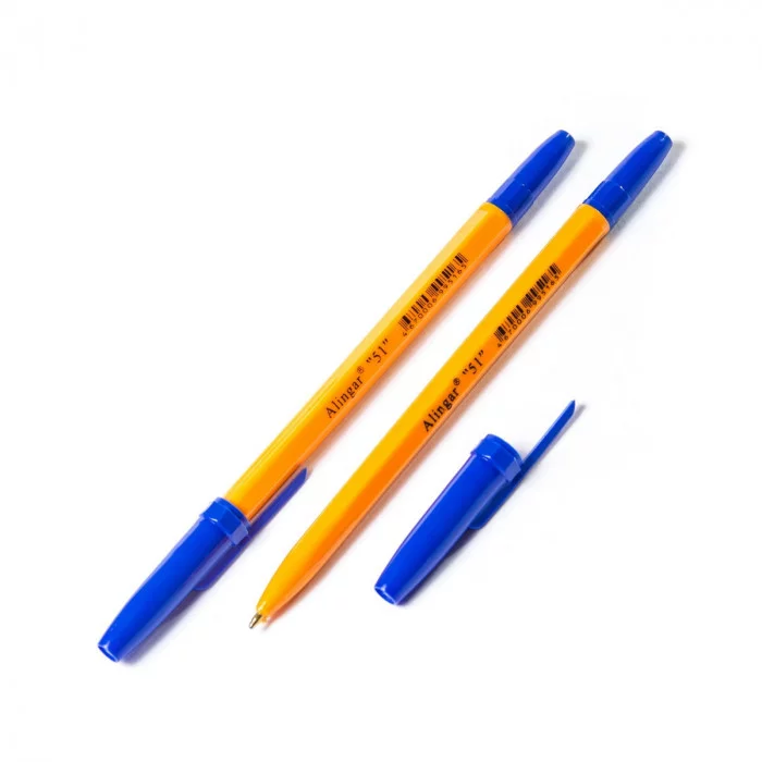 Ручка шариковая, Alingar, "51" синяя, 1,0 мм., оранжевый пластиковый корпус AL51