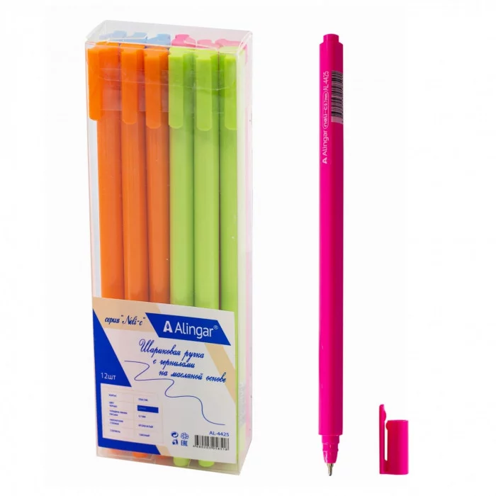 Ручка шариковая Alingar "NELI-C", 0,7 мм, синяя, игольчатый наконечник, круглый, цветной, пластиковый корпус, пластиковая упаковка AL4425