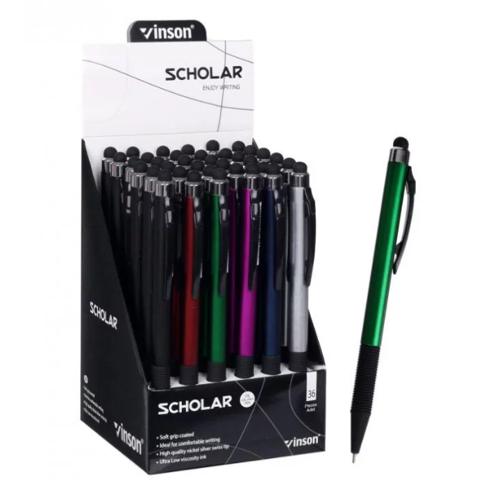 Ручка шариковая автоматическая 0,7мм синяя масляная,Vinson корпус МИКС резиновым держателем,штрихкод