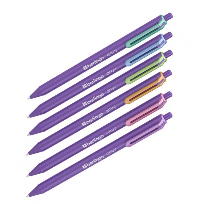 Автоматическая шариковая ручка Berlingo кросс-серии Envy – воплощение функциональности и фирменного стиля бренда. Толщина линии письма составляет 0,5 мм, длина – 600 м. Ручка Envy – идеальный вариант для тех, кому приходится постоянно вести записи: школьников, студентов, офисных сотрудников. Синие чернила пониженной вязкости на масляной основе гарантируют лёгкость письма без усталости для кисти. Мягкий резиновый грип не даёт пальцам соскальзывать. Корпус увеличенного диаметра и бархатистое на ощупь матовое покрытие soft-touch обеспечивают дополнительный комфорт при письме. Клип позволяет надёжно закрепить ручку на кармане рубашки, ежедневнике или планшете. Диаметр пишущего узла составляет 0,7 мм, благодаря чему изделие подходит для любого стиля письма. В дизайне используется узнаваемая цветовая комбинация: сочетание фиолетового и пастельных оттенков. Пишущие принадлежности поставляются в пластиковой тубе-дисплее по 30 штук. Цвет чернил: синий; Толщина линии письма: 0,5 мм; Длина письма: 600 м; Цвет корпуса: а