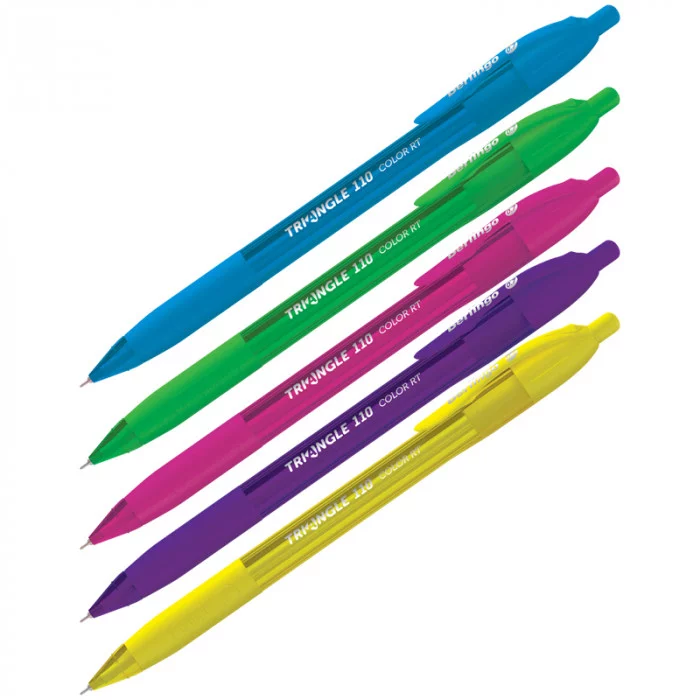 Шариковая автоматическая одноразовая ручка Berlingo Triangle 110 RT Color станет непременным ярким атрибутом для учёбы или работы. Корпус эргономичной трёхгранной формы и резиновый грип обеспечивают комфорт при работе с ручкой. Кнопочная подача стержня создаёт дополнительное удобство. Цвет чернил – синий. Диаметр пишущего узла составляет 0,7 мм, благодаря чему ручка прекрасно подходит для любого стиля письма. Толщина линии письма составляет 0,5 мм, длина линии письма – 820 метров. Уникальная запатентованная технология Smart Ink обеспечивает лёгкое и приятное письмо за счёт использования чернил пониженной вязкости, специальной конструкции пишущего узла и инновационных материалов шарика и пишущего узла. Инновационные компоненты, используемые для изготовления шарика пишущего узла (карбид вольфрама), обеспечивают долговечность и стабильность качества письма. Технология Smart Ink; Цвет чернил: синий; Толщина линии письма: 0,5 мм; Длина письма: 820 м; Цвет корпуса: микс из 5-ти цветов.
