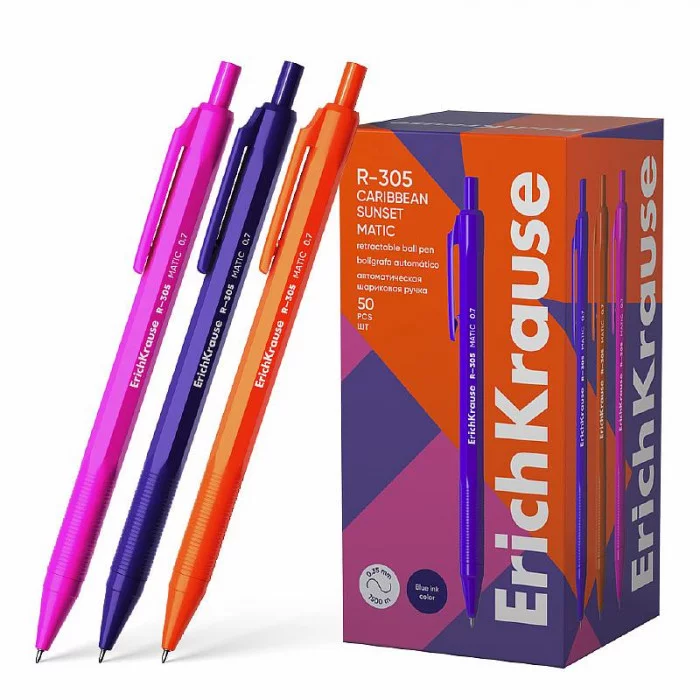 Ручка шариковая автоматическая ErichKrause R-305 Matic Caribbean Sunset 0.7, цвет чернил синий 61260