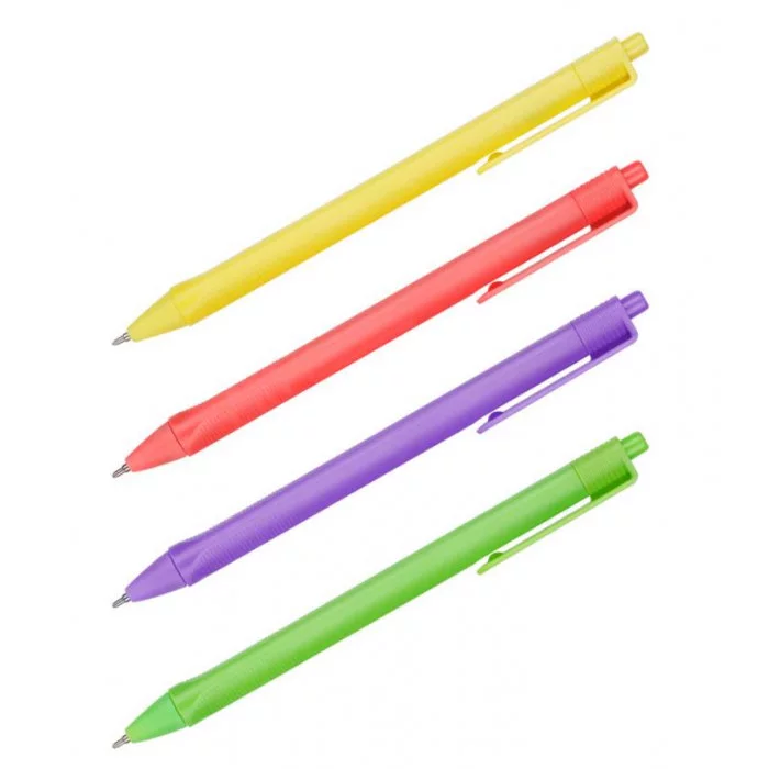 Шариковая автоматическая ручка OfficeSpace Juicy Trio – это помощник для учёбы и работы, который каждый день дарит яркое настроение. Ручка представлена с игольчатым наконечником. Диаметр пишущего узла составляет 0,7 мм, поэтому ручка прекрасно подходит для любого стиля письма. Толщина линии письма составляет 0,5 мм, обеспечивая изящный и красивый почерк. Длина письма – 350 метров. Длина ручки – 141. Яркий корпус представлен в четырёх сочных цветах. Удобная трехгранная форма корпуса позволяет ручке комфортно лежать в руке. Благодаря клипу модель можно закрепить на одежде, тетради или ежедневнике. Кнопочная подача стержня обеспечивает дополнительное удобство при работе.