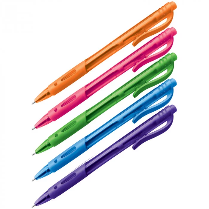 Автоматическая шариковая ручка OfficeSpace «Знак!» с кнопочным полуавтоматическим механизмом подойдет для ежедневного использования. Внутри яркого цветного пластикового корпуса – синие чернила. На ручке есть клип – можно закрепить её на одежде или тетради. Специальная резиновая накладка грип-зоны препятствует выскальзыванию ручки из пальцев. Ручка представлена в 5 цветах корпуса: синий, зелёный, оранжевый, фиолетовый, розовый. Благодаря диаметру пишущего узла 0,7 мм подходит для любого стиля письма. Цвет чернил: синий; Механизм: кнопочный; Толщина линии письма: 0,5 мм; Длина письма: 700 метров; Цвет корпуса: ассорти.