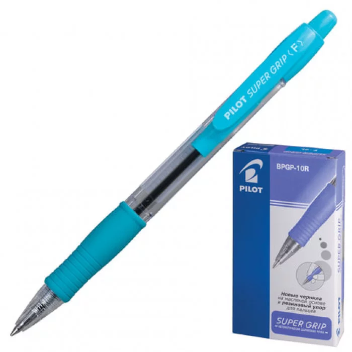 Ручка шариковая автоматическая Pilot "Super Grip" синяя, 0,7мм, голубой грип Pilot 028646