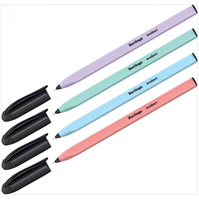 Контрастное сочетание трендовых пастельных цветов с чёрными деталями сделает ручку Berlingo Instinct превосходным канцелярским помощником в работе. Ручка с вентилируемым колпачком, который безопасен при использовании детьми, оснащена также пластиковым клипом для удобной фиксации. Благодаря технологии soft-touch, приятное на ощупь бархатистое покрытие корпуса создает дополнительный комфорт при письме. Диаметр пишущего узла составляет 0,7 мм, благодаря чему ручка прекрасно подходит для любого стиля письма. Цвет чернил: синий; Толщина линии письма: 0,5 мм; Длина письма: 1000 м; Цвет корпуса: микс цветов.