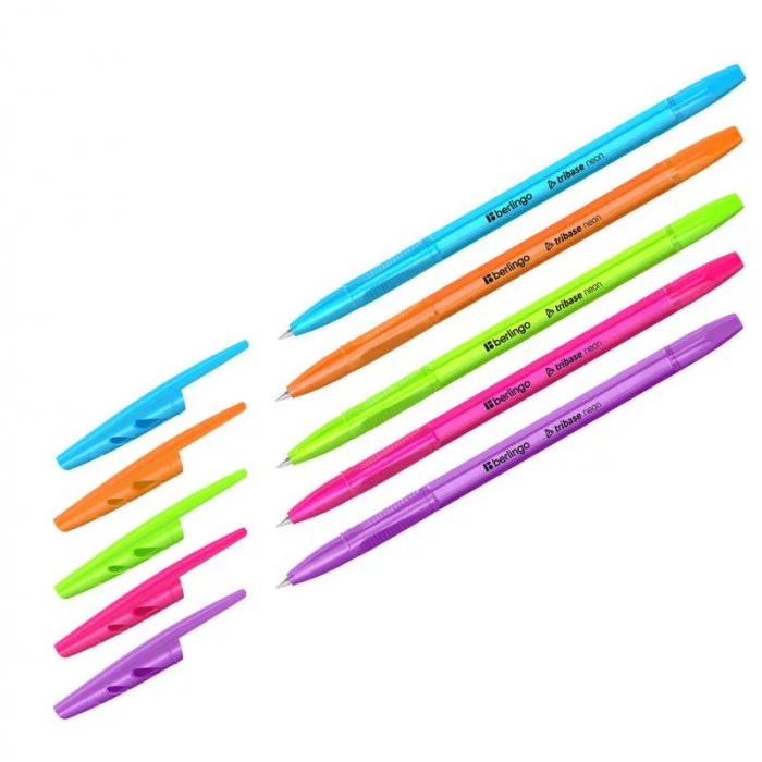 Ручка шариковая Berlingo "Tribase Neon" синяя, 0,7мм, корпус ассорти 265896