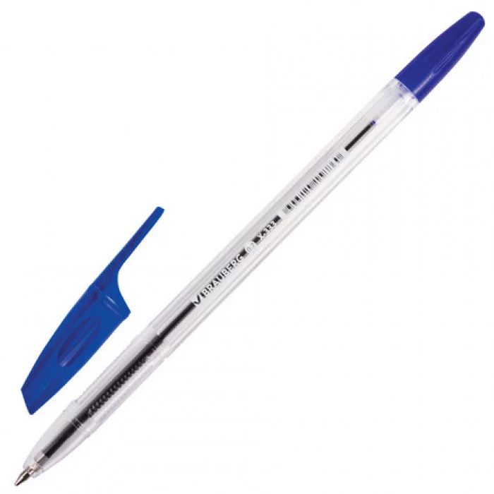 Ручка шариковая BRAUBERG "X-333", СИНЯЯ, корпус прозрачный, узел 0, 7 мм, линия письма 0, 35 мм, 142405