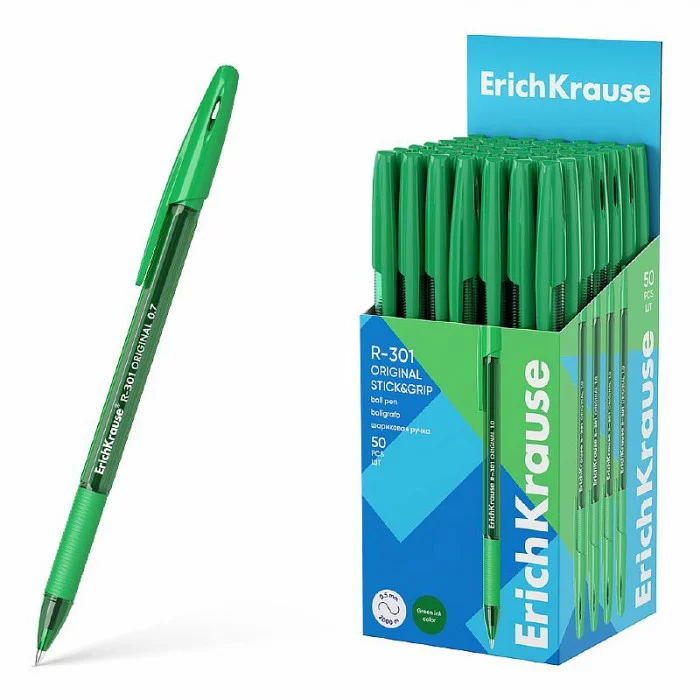 Ручка шариковая ErichKrause R-301 Stick&Grip Original 1.0, цвет чернил зеленый 60975