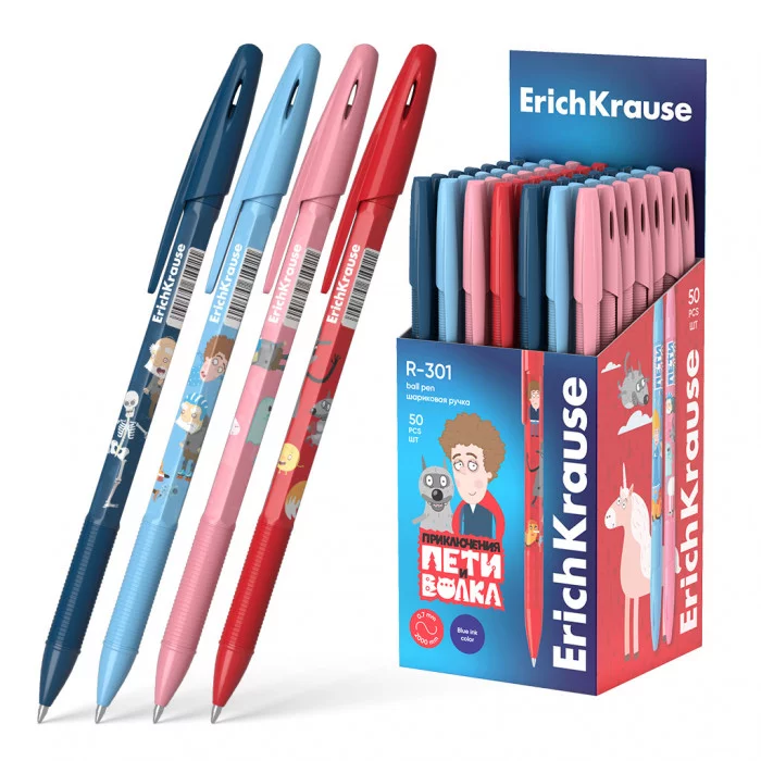 Ручка шариковая ErichKrause R-301 Stick&Grip Приключения Пети и Волка 0.7, цвет чернил синий 61002