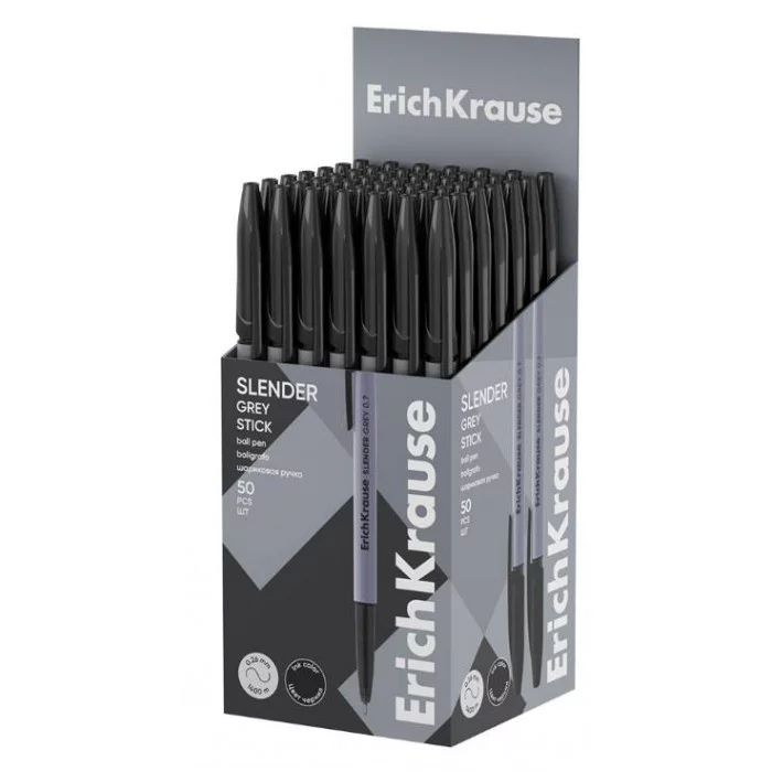 Ручка шариковая ErichKrause Slender Stick Grey 0.7, Super Glide Technology, цвет чернил чёрный 63086