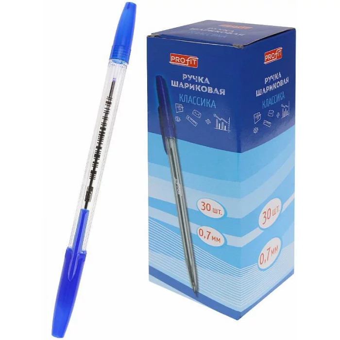 Шариковая ручка синего цвета обеспечивает лёгкое и мягкое письмо. Быстро высыхающие чернила не размазываются и имеют насыщенный цвет. Диаметр 0,7 мм.