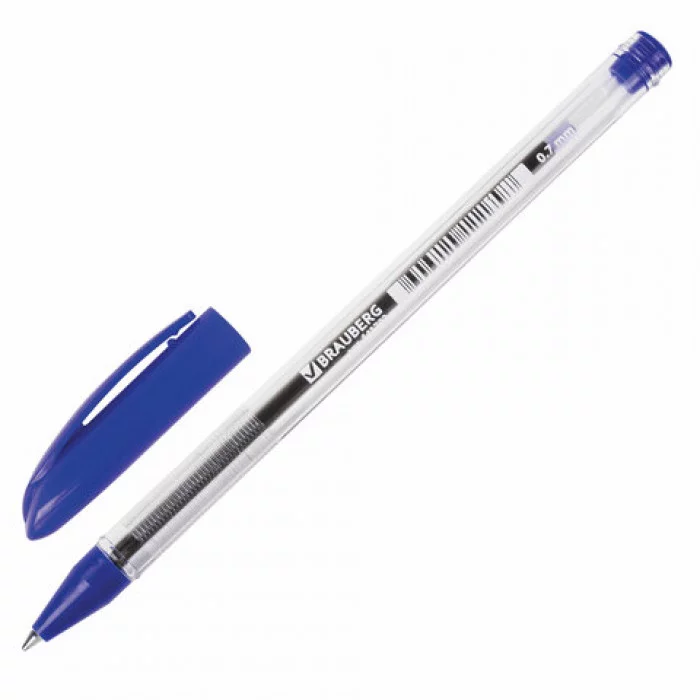 Ручка шариковая масляная BRAUBERG Rite-Oil, корпус прозрачный, 7мм, линия 0, 35мм, синяя, 141702