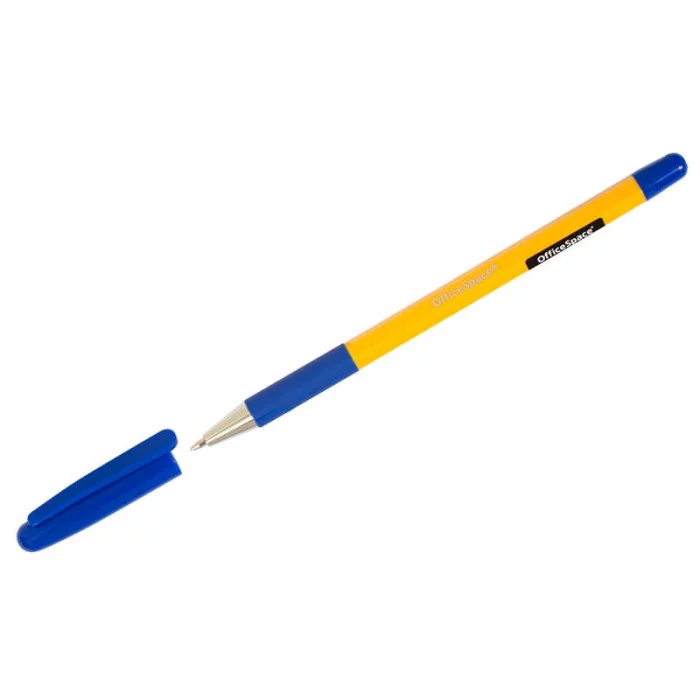 Ручка шариковая OfficeSpace "Yellow Stone" синяя, 7мм, грип, штрихкод 259344