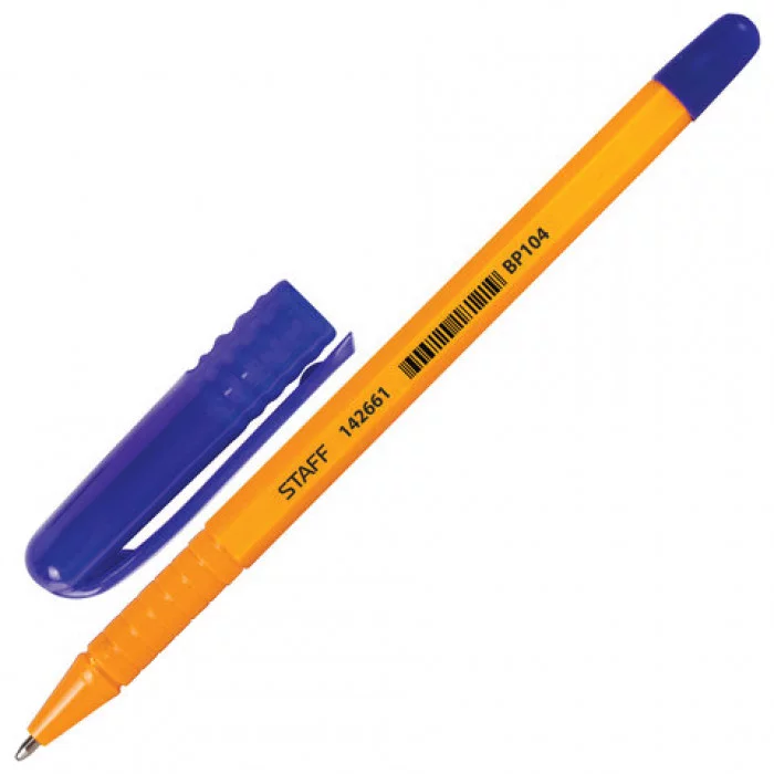 Ручка шариковая STAFF, шестигранная, корпус оранжевый, узел 1мм, линия 0,5мм, синяя, BP104, 142661
